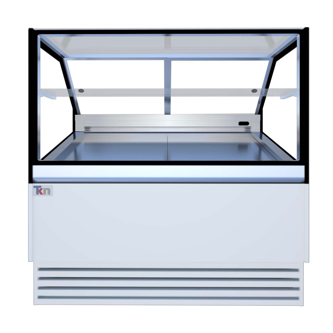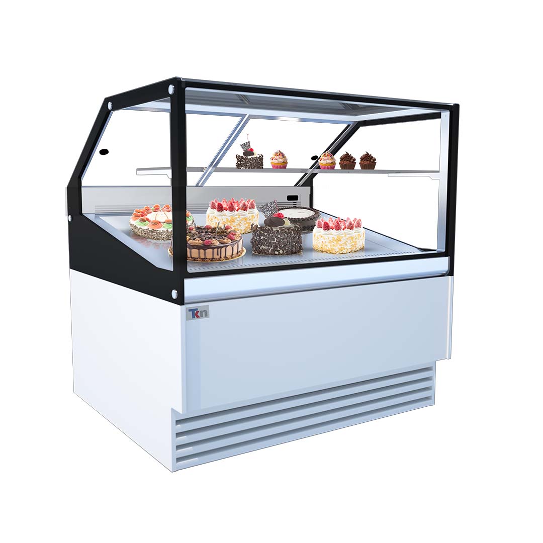 La vitrina para pasteles TKN12SP está fabricada en acero inoxidable cepillado con vidrio ultratransparente de apertura práctica. Equipada con refrigeración eficiente mediante gas R290 y control electrónico de temperatura, incorpora compresores de alta eficiencia que reducen el consumo energético. Su diseño moderno y elegante, con acabados resistentes y ruedas universales.